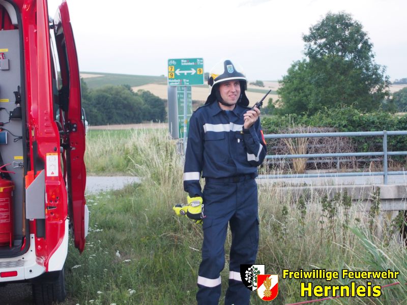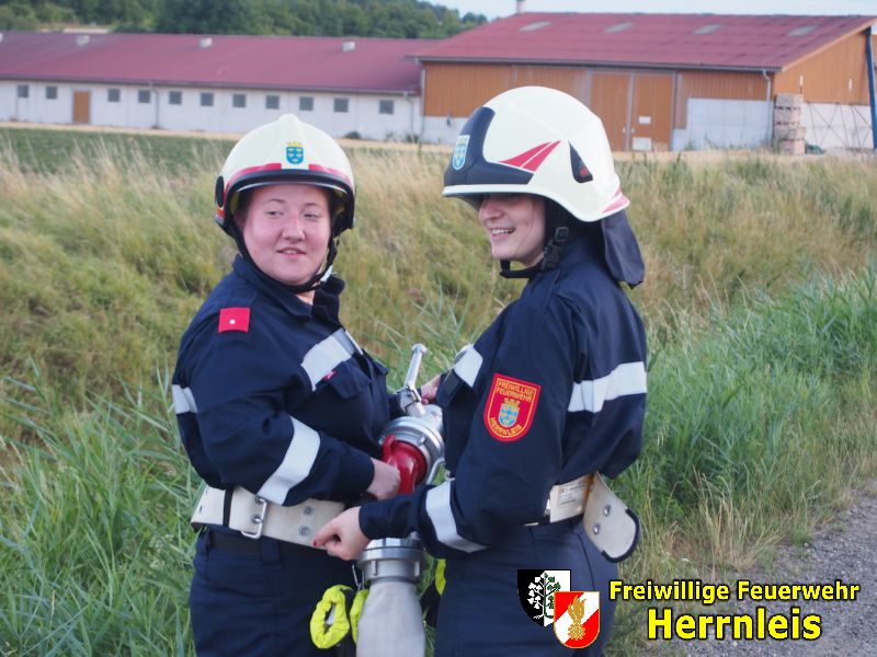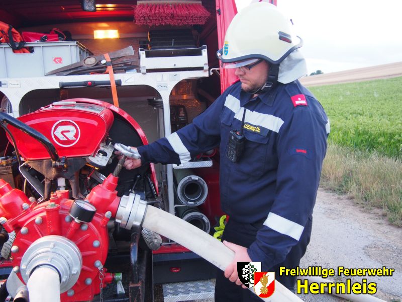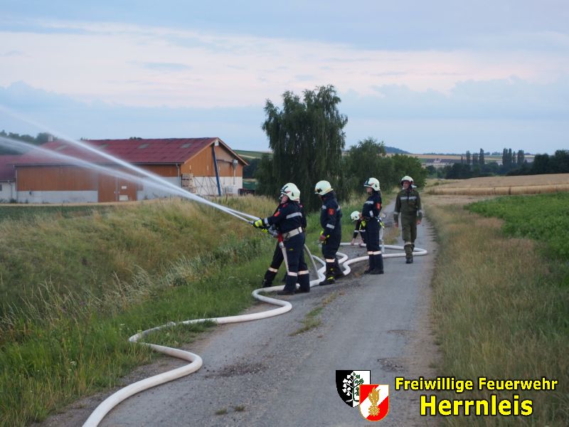 Übungsannahme bei der letzten Übung vor der Sommerpause war ein Brand eines Mähdreschers.