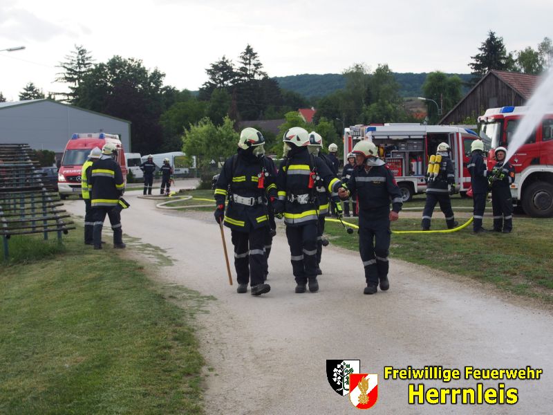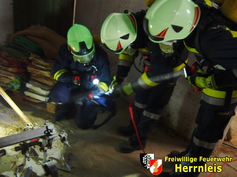 Nach kurzer Bereitstellungszeit musste der Atemschutztrupp Herrnleis zur Menschenrettung eingesetzt werden.